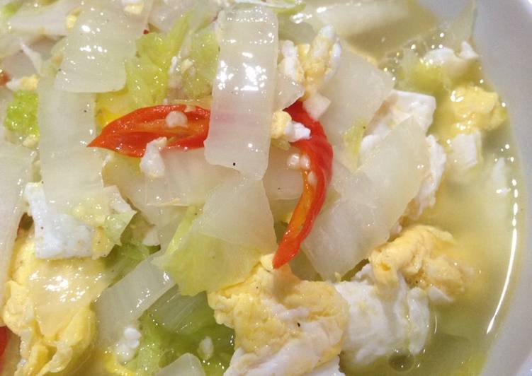 Resep numis sawi putih pkai sosis ama telur / rese.
